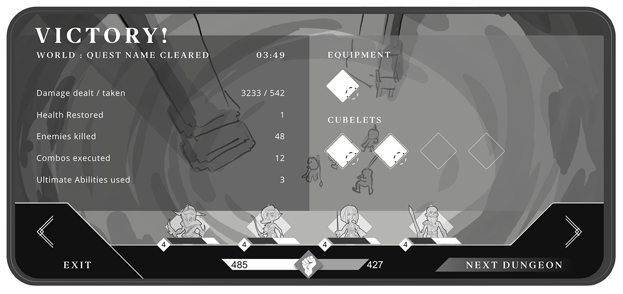 Note: A lot of this is work in progress (depicted as monochrome here) and thus subject to evolve as we develop the game and take in feedback from people like you!